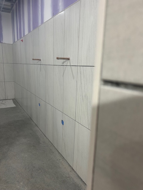 All demolition is complete and drywall framing is almost finished in both locker rooms. Our next step is to replace all of the wood blocking for miscellaneous items attached to the walls, ie; grab bars, shower doors, cabinets and lockers.